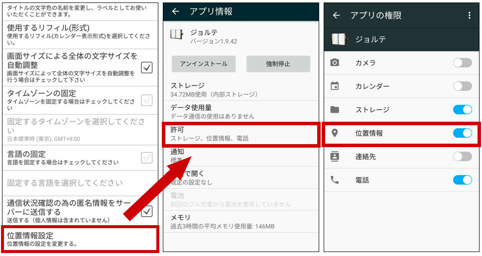 ※位置情報設定をonに変更してもダイアログが表示されない場合、反映に時間がかかっている可能性がございます。時間を置いて再度、翌日などにお試しください。